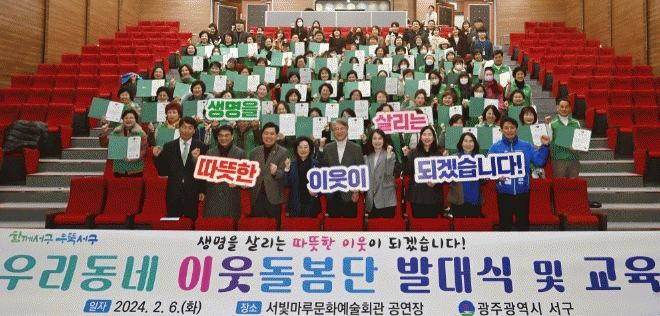 김이강 서구청장은 “우리동네 이웃돌봄단은 고독하게 혼자 사는 주민들에게 생명의 소중함과 사회의 관심을 알리는 따뜻한 이웃이 될 것이다”며 “고독사라는 안타까운 일이 발생하지 않도록 사명감을 가지고 돌봄 활동에 최선을 다해주길 바란다”고 말했다.