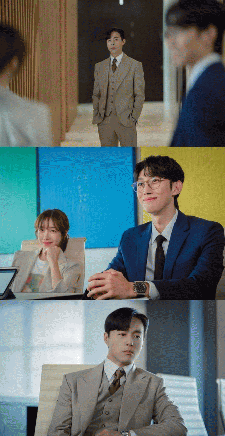 특히 ‘솔루션’으로 뭉친 두 사람의 여유만만한 기세와 어딘가 심기가 불편해 보이는 차율 로펌의 후계자 노율성의 극명한 온도 차가 엿보인다.
