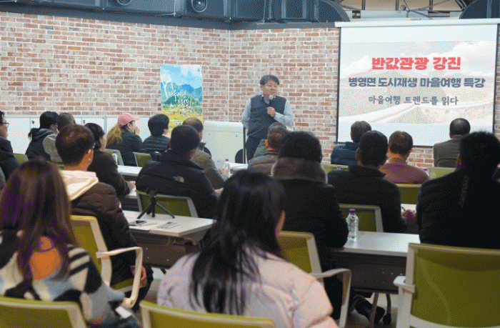 특강은 병영면 주민해설사를 비롯해 청년 등 주민 40여 명이 참석해 높은 관심을 보인 가운데, 문화재청 평가위원이자 지역공동체활성화센터 센터장을 맡고 있는 모세환 대표가 ‘반값관광 강진, 마을 여행 트렌드를 읽다’라는 주제로 강의를 진행했다.