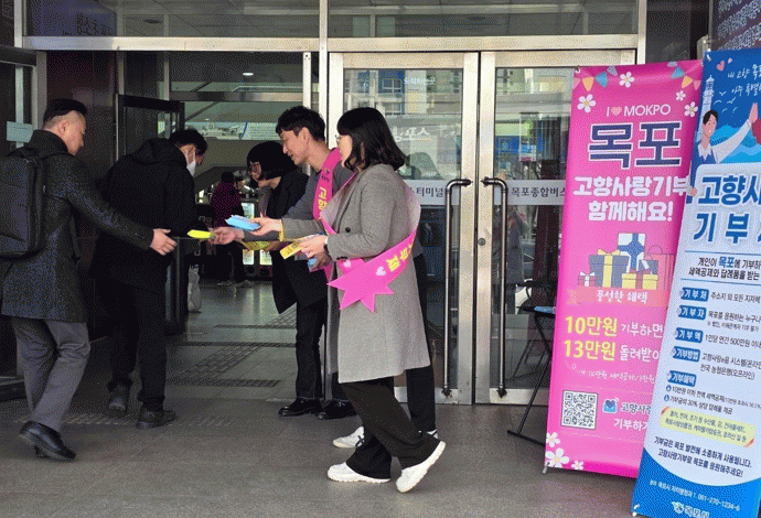 이번 홍보는 고향을 찾은 귀성객과 아직 고향사랑기부제에 대한 내용을 접하지 못한 시설 이용자를 대상으로 제도 안내와 동참 분위기 조성을 위해 마련됐으며, 고향사랑기부제의 참여 혜택과 목포의 다양하고 풍성한 답례품을 생생하게 전달했다.