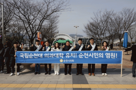 한편, 순천시의회는 지난해 10월 전남권 국립 의과대학 설립 촉구 결의대회를 열고, 제272회 임시회 제3차 본회의에서 ‘전남권 국립 의과대학 설립 촉구 건의안’을 발의하여 최종 의결하는 등 지역 내 의대 유치를 위한 적극적인 의정활동을 펼쳐오고 있다.