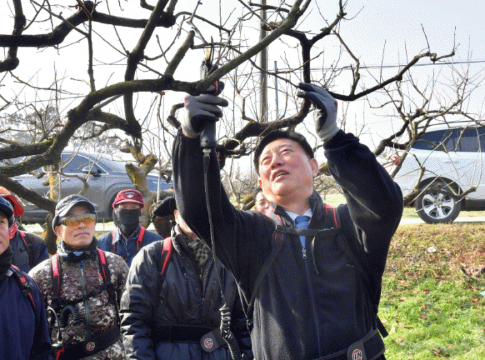 8일, 현장을 방문한 김한종 장성군수는 “과수 전정지원단은 고품질 과일 생산의 견인차 역할을 맡고 있는 농업 전문가 집단”이라며 감사와 격려 인사를 전했다. 이어서 “과일의 고장이라는 명성을 이어갈 수 있도록, 군도 지원을 아끼지 않겠다”고 말했다.