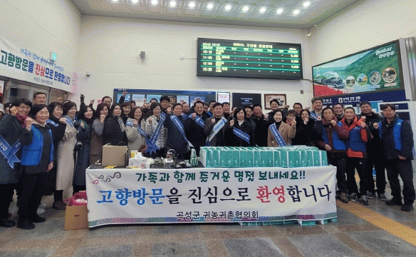 곡성군 귀농귀촌협의회 회원을 포함한 약50여 명이 참여한 이번 행사는 귀농귀촌 지원 정책, 고향사랑기부제, 곡성몰, 문화관광 정보가 담긴 안내물과 따뜻한 차를 제공함으로써 귀성객들에게 고향의 따스함을 전달했다.