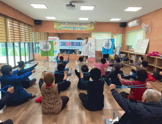 올해 2월 초부터 운영하고 있는 ‘효사랑 경로당 순회의료서비스’는 의료접근성이 떨어지는 경로당 50개소를 방문하여 주민 맞춤형 의료서비스를 제공하는 것으로 보건소 방문보건팀, 건강증진팀, 정신건강팀, 치매안심팀, 공중보건의사가 팀으로 구성되어 있다.