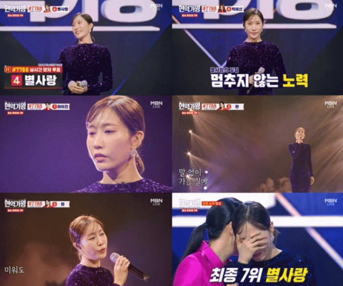 원곡의 감동은 살리면서도 별사랑만의 색깔과 매력으로 완벽하게 재해석하며 모든 것을 쏟아부은 듯한 진심 어린 무대를 선사해 시청자들을 울컥하게 했다.