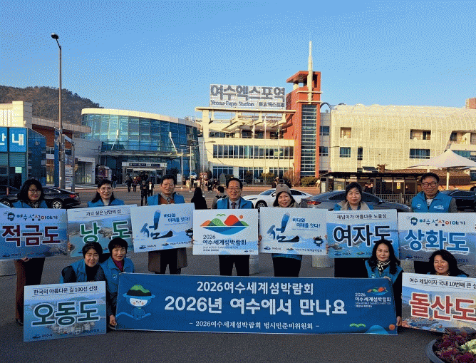 이들은 돌산도, 여자도, 상하도, 적금도 등이 새겨진 피켓으로 여수시 주요 섬을 알렸으며, ‘2026여수세계섬박람회 2026년 여수에서 만나요’를 캐치프레이즈로 한 현수막으로 홍보에 열을 올렸다.