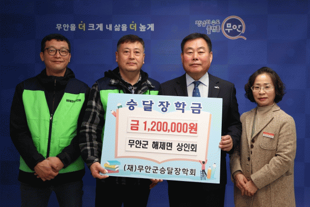 노운구 해제면 상인회장은 “꿈을 이루기 위해 노력하는 학생들에게 조금이나마 도움을 주고자 장학금을 기탁하게 됐다”며, “군민으로서 무안군 발전과 지역인재 육성에 조금이나마 도움이 될 수 있어서 기쁘다”고 말했다.