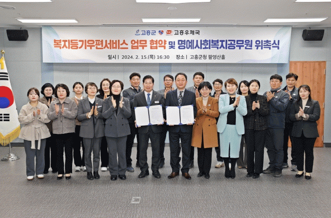한편, 고흥군은 1월 말 기준으로 복지이장 등 1,490명의 명예 사회복지공무원이 위기가구 발굴 및 복지정보 등을 제공하는 활동에 자발적으로 참여하고 있으며, 이번 협약으로 사회적 고립 가구를 더 빠르게 발굴·지원하게 될 것으로 보인다.