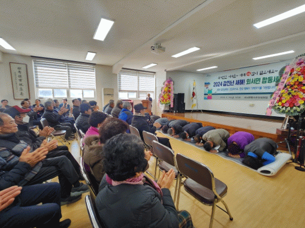 마을 어르신들이 자리를 잡고 면민들이 합동세배를 하며 어르신들을 향한 공경의 마음을 전했고, 노인회와 백이회에서는 부녀회와 이장단에게 새뱃돈과 덕담을 전하며 답례했다.