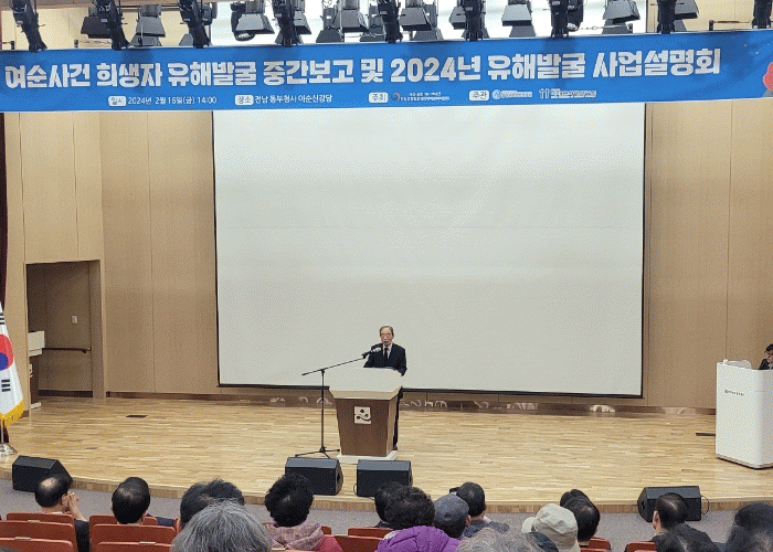 김용덕 전남도 여순사건지원단장은 “집단 학살지와 암매장지 발굴을 통해 여순사건의 진상규명을 위한 실체적 증거를 확보하고, 희생자의 인권 회복과 유족의 원통한 마음을 풀어주기 위해 적극 노력하겠다”고 말했다.