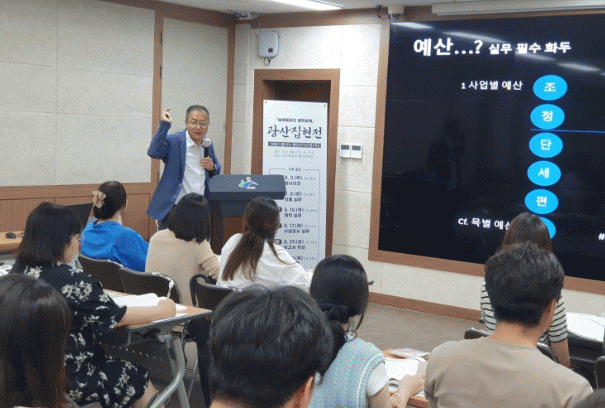 이어 7 부터 8월 추진할 하반기 과정은 △보고서작성 기초와 실습 △지출 기초와 실습 △계약 △시설공사 △민간경상보조금 정산 5개 과정으로 구성했다.