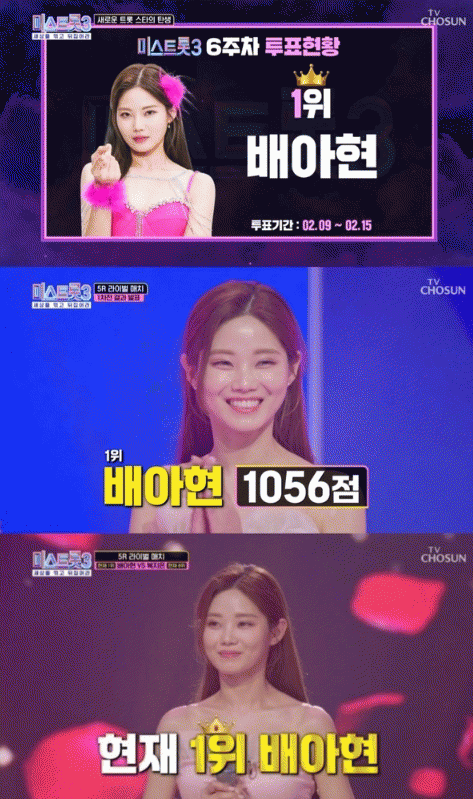 배아현은 현재 방송 중인 TV CHOSUN '미스트롯3'에서 우승 후보다운 저력을 보여주고 있다.