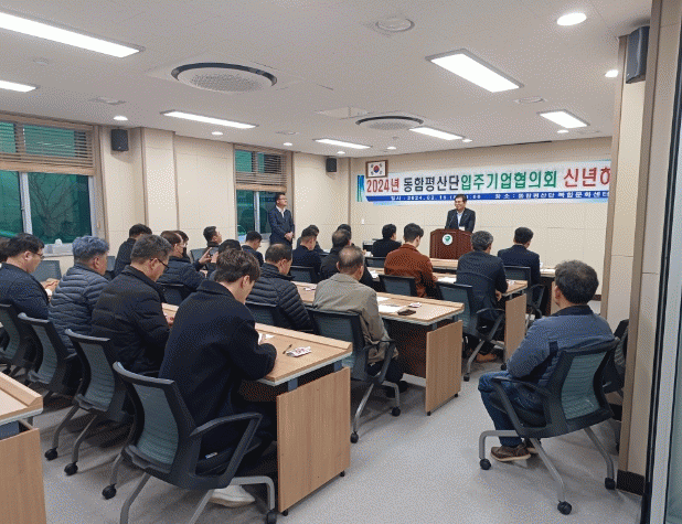 입주기업 대표 30여 명을 비롯해 이상익 함평군수와 윤앵랑 함평군의장, 모정환 전라남도의원이 참석한 가운데 15일 치러진 이번 신년 하례식에서 동함평산단 입주기업체 협의회는 2023년 활동 성과 및 경과를 공유하고, 2024년 사업계획 보고 등을 진행했다.