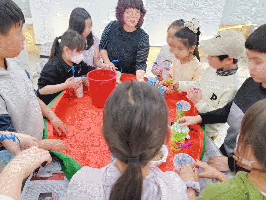 이번 수업은 원예재생아트 지도사로 평생교육개발원 등에서 활발히 활동 중인 이수민 강사를 초청해 재활용한 일회용 플라스틱 컵에 냅킨아트와 물감을 활용하여 어린이들이 자신만의 특별한 화분을 꾸미고, 직접 식물을 심어보는 체험이었다.