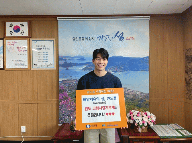 배우 위하준은 “고향 완도에 고향사랑기부금을 기부하게 되어 뜻깊게 생각하며, 작은 정성들이 모여 완도가 발전하는 데 도움이 됐으면 한다”라고 전했다.