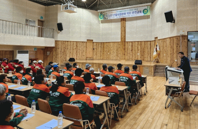선종환 산림과장은 교육참석자들에게 “산림 일자리 사업장에서 사고가 발생하지 않도록 항상 건강과 안전에 유념할 수 있도록 지원하겠다.”라며 “이번 교육을 통해 안전사고 예방의 중요성에 대해 다시 한번 강조하고 안전한 사업장을 만들어 가는 데 최선을 다해 달라.”라고 말했다.