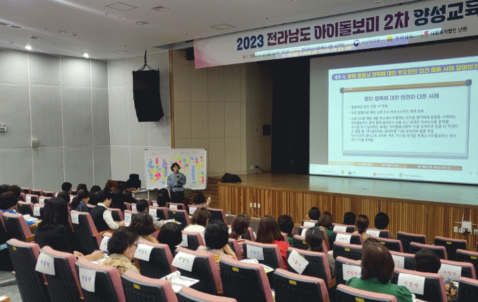 전남도는 아이돌보미 희망자를 대상으로 연간 100여 명의 양성교육을 실시하고, 활동 중인 아이돌보미를 대상으로 매년 1천여 명의 보수교육을 하는 등 전문성 강화와 돌봄 인력 양성에 노력하고 있다.
