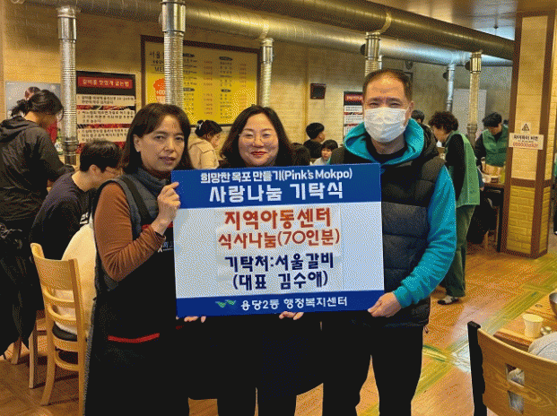 이번 나눔은 서울갈비에서 70인분의 갈비와 식사를 준비했으며, 용당2동 새마을부녀회 회원들이 함께 참여해 아동들과 소통하며 봉사자와 참여자 모두 즐거운 마음으로 행사에 참여했다.