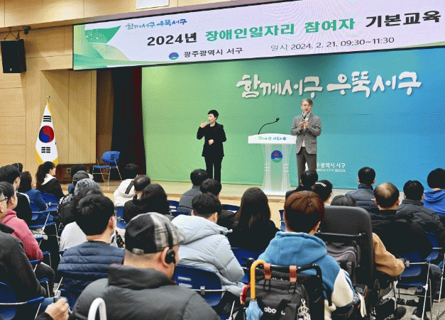 서구 장애인 일자리 사업은 전일제, 시간제로 운영되는‘일반형일자리’와 참여형, 특수교육 연계형으로 운영되는‘복지일자리’로 구분되며, 교육을 받은 참여자들은 구청, 행정복지센터, 사회복지시설 등에서 ▲장애인주차구역 계도 ▲지역아동센터 수어교실 운영 ▲전동휠체어 급속충전기 점검 ▲행정사무보조 ▲환경정비 등 다양한 업무를 수행할 예정이다.
