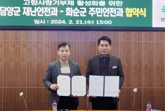 이번 협약을 통해 담양군 재난안전과와 화순군 주민안전과는 고향사랑기부제 성공 정착을 위해 매년 상호협력체계를 구축, 건전한 기부문화 확산에 공동으로 나서기로 했다.