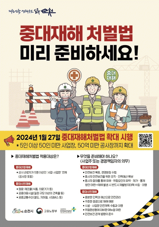 또한 시는 영세.중소기업의 열악한 여건을 감안해 여수고용노동지청과 협업을 통한 중대재해처벌법 교육, 홍보 등도 병행할 계획이다.