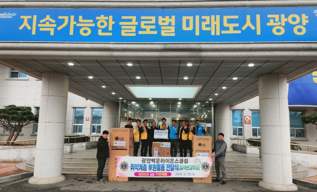 정용균 광양읍장은 “지역 소외계층의 복지증진과 생활 밀착형 복지지원 실현을 위해 매년 후원과 봉사에 동참해 주시는 백운라이온스클럽에 감사드린다”며 “지역 이웃에게 따뜻한 온기가 전달될 수 있어 더 뜻깊은 시간이었다”고 말했다.