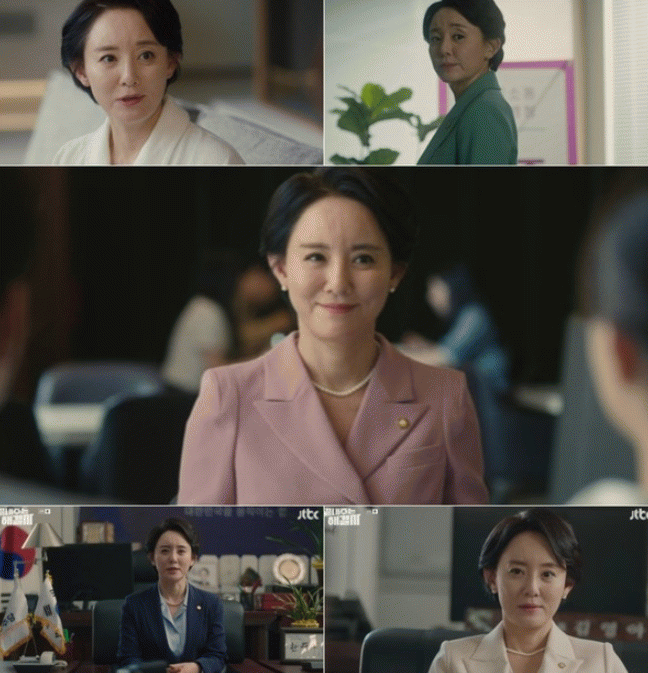 영아는 자신의 사무실에 찾아온 노율성(오민석 분)이 로스쿨 확대법 통과를 위해 은밀히 거래를 제안하자, 수긍하는 척하면서 “어쩌죠. 저는 배우자에게 파렴치한 분과는 손잡지 않는데”라는 거절 의사로 팩폭을 날렸다. 눈빛, 표정, 말투 등 감정 변화를 입체적으로 그려낸 손지나의 표현력이 극을 더욱 다이내믹하게 만들었다.