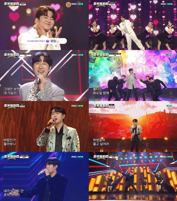 마지막으로 김중연은 "음악 방송에서 처음 선보이는 곡이다. 저를 향한 '사랑의 스위치'를 켜달라"며 '사랑의 스위치'를 선곡해 무대를 꾸몄다. 폭발적인 가창력과 눈을 뗄 수 없는 화려한 퍼포먼스가 복고 스타일의 곡을 한층 흥 넘치게 완성했다.