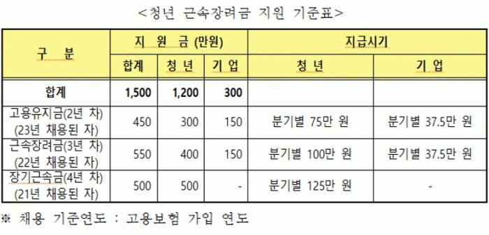선정 기업에는 △2~3년 차 150만 원을 지원하고, 청년 취업자의 경우 △2년 차는 연 300만 원 △3년 차 400만 원 △4년 차 500만 원을 지원한다.