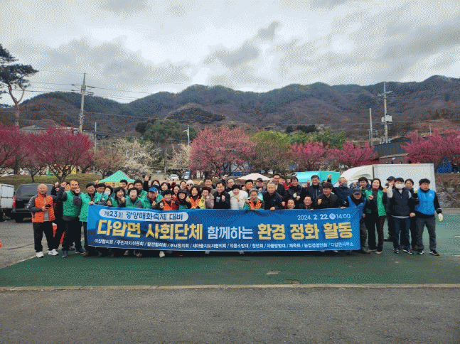 다압면 직원과 이장협의회, 주민자치위원회, 발전협의회, 부녀협의회, 새마을지도자협의회, 청년회 등 100여 명이 참석한 가운데 매화마을과 섬진강 둔치를 중심으로 겨울 동안 방치된 쓰레기를 집중적으로 수거했다.
