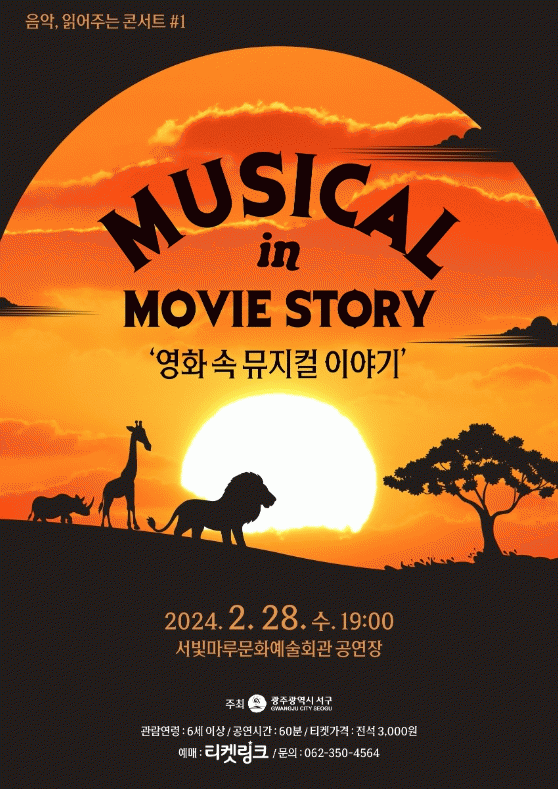 공연은 6세 이상 누구나 볼 수 있고 관람료는 전석 3천원으로 티켓링크에서 예매할 수 있다. 공연과 관련한 자세한 사항은 서구청 문화예술과로 문의하면 된다.