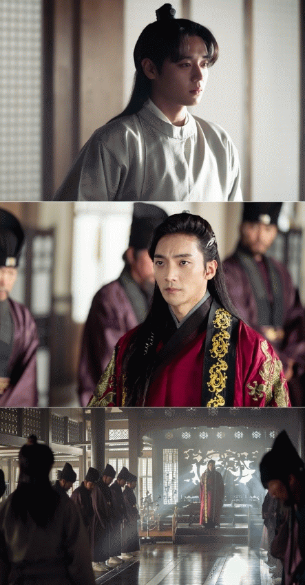 이런 가운데 25일 공개된 스틸에는 궁궐로 돌아와 편전에 들어선 사조 현, 그리고 그를 마주 바라보는 사조 융의 모습이 담겨 있다.