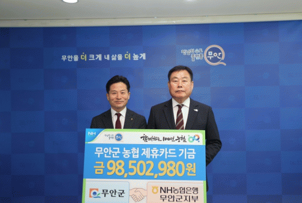 이번 제휴카드 기금은 무안군과 NH농협은행 무안군지부가 제휴카드 발전 기금 협약을 맺고 지난해 1월부터 12월까지 보조금 카드, 공무원 복지 카드, 지자체(클린)카드, 보탬e카드 이용액의 0.1 부터 1% 상당을 포인트로 적립한 금액이다.