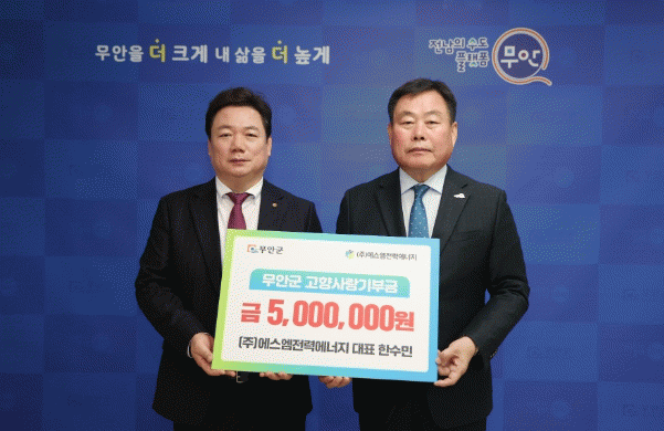 한수민 대표는 “무안군의 지역 발전과 주민 복리증진을 위해 조금이나마 도움을 드리고 싶어 고향사랑기부제에 참여하게 됐다”며, “더 큰 무안 건설의 마중물 역할을 할 무안군 고향사랑기부제의 성공을 적극 응원하겠다”고 말했다.