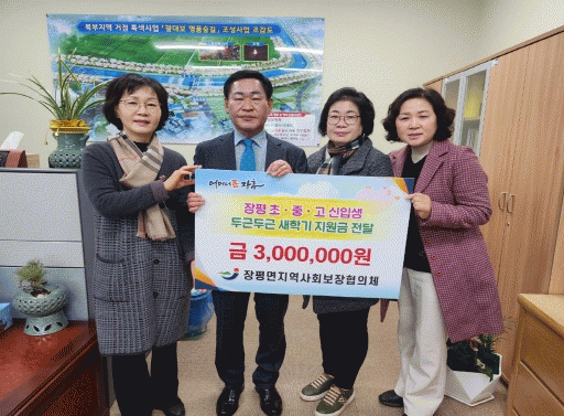 김성호 장평면장은 “지역 청소년들이 희망찬 새학기를 맞이할 수 있도록 힘이 되길 바란다”며, “앞으로도 지역 아동의 복지에 관심을 가지고 아이 키우기 좋은 환경을 만들어 나가겠다”고 전했다.