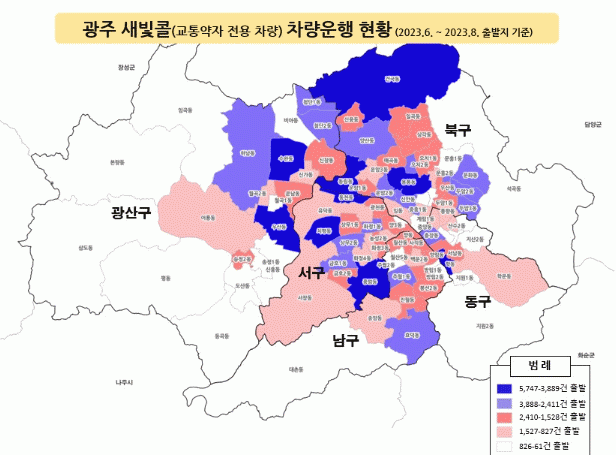 광주광역시는 지난해 6월부터 8월까지 3개월 동안 ‘새빛콜(특별교통수단)’ 이용현황을 분석했다. 교통약자의 이동권 보장 및 복지 증진, 중증보행장애인 이동수단의 차량대기 불편사항 해소를 위해 ‘새빛콜 배차 효율화 지원을 위한 빅데이터 분석’을 실시한 것이다.