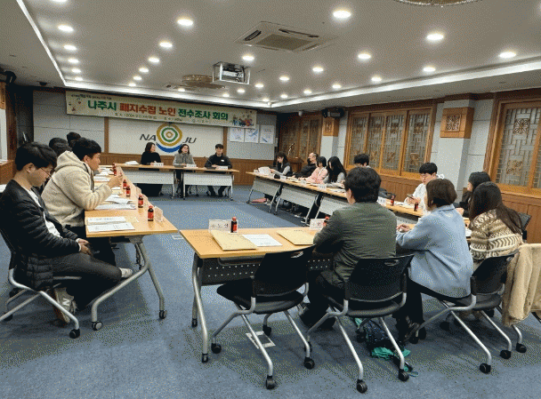 한편, 전수조사에 앞서 나주시는 노인일자리 수행기관 4개소, 20개 읍면동 맞춤형 복지팀과 폐지수집 노인 전수조사 및 맞춤형 보건복지서비스 지원에 따른 세부 추진 방안에 관한 간담회를 가졌다.