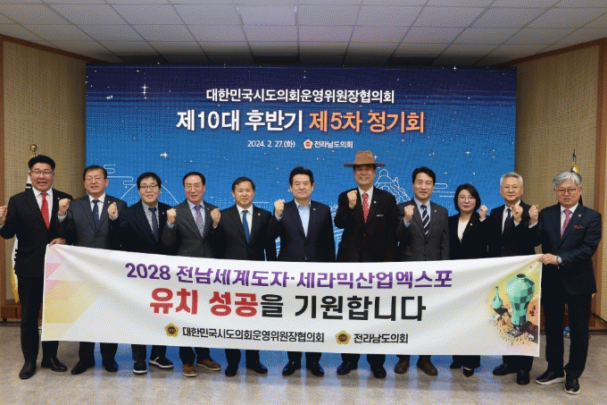 아울러 “2028전남세계도자ㆍ세라믹산업 엑스포 유치가 전남 도자산업의 세계시장 진출 및 미래형 도자산업 부가가치 창출을 도모하는 계기가 될 것으로 기대한다”며, “전국 17개 시도의회 운영위원장들께서 함께 응원해 주고 성원해 주길 부탁드린다”고 당부했다.
