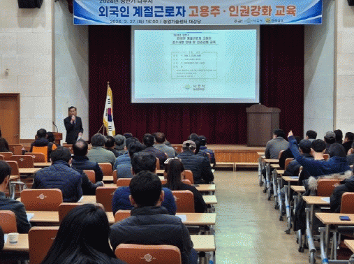 27일 나주시에 따르면 농업기술센터 대강당에서 122농가를 대상으로 실시한 이번 교육은 외국인 계절근로자 고용농가 준수사항 뿐 아니라 외국인 계절근로자의 인권보호 강화, 폭력 및 인권침해 예방을 위해 마련됐다.