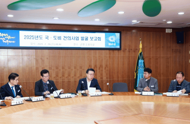 이날 보고회는 구복규 군수 주재로 부군수, 전 부서장 25명 등이 참석했고, 2025년 국·도비 건의사업 총 65건 중 신규로 발굴된 37건, 총사업비 2,072억원(국비 973억원)에 대해 사업의 추진계획 보고와 재원 확보 방안 등을 중점 협의했다.