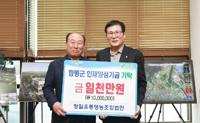 함평군 관계자는 “지난 27일 청일유통영농조합법인(대표 한정곤)에서 함평군 인재양성기금에 1천만 원을 기탁했다”고 밝혔다.