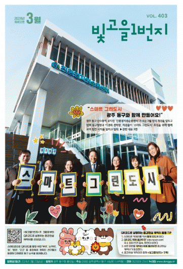 동구는 매달 5만 부 발행되는 구정 소식지 ‘빛고을1번지’를 올해 3월호부터 지면 개편을 통해 QR코드를 활용한 증강현실 캐릭터를 지면에 전면 배치했다. 지난해 첫선을 보인 충장축제 캐릭터 5종(소덕이·츄·로라·고고·부리)을 활용해 스마트폰으로 해당 QR코드에 접속, 증강현실 캐릭터를 촬영하면 화면에 캐릭터가 입체적으로 등장해 재미를 더해준다.