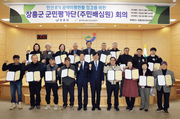 군민 평가단은 앞으로 3월 5일 2차회의, 3월 19일 3차 최종회의를 거쳐 민선8기 장흥군의 공약 실천상황에 대한 의견과 개선방안을 마련한다.