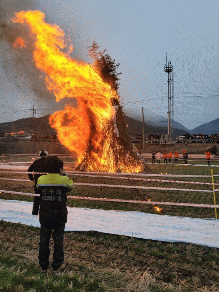 제례를 마치고 역대 청년회장들과 직능단체장이 함께 달집에 불을 붙였다. 주민들은 달집이 다 탈 때까지 저마다의 소원을 빌었고, 행사 후에는 부녀회에서 마련한 떡국을 나눠 먹으며 정담을 나눴다.