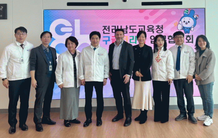 전남교육청은 28일 청사 교육감실에서 김대중 전남교육감과 콜린 마슨(Colin Marson) Google for Education 아시아 태평양 디렉터 등이 참석한 가운데 업무협의회를 갖고, 전남교육의 디지털 대전환 실현에 협력하기로 했다.