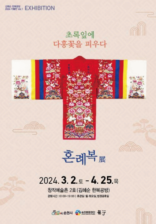 2024년 '뜰안의 행복'을 주제로 기획된 ‘김혜순 한복공방’의 전시사업 첫 기획전은 '초록잎에 다홍꽃을 피우다' ‘조선시대의 전통 혼례복’전으로, 조선시대 혼례에 사용되었던 복식을 중심으로 활옷에 수놓아진 화려하고 아름다운 전통자수와 각종 혼례 소품들을 전시한다.