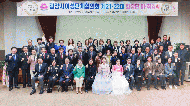 이날 행사에는 정인화 광양시장, 서영배 광양시의회 의장 및 도·시의원, 정강옥 소방서장을 비롯한 여러 기관단체장, 여성단체 회원 등 100여 명이 참석한 가운데 제21대 김미옥 회장이 이임하고, 제22대 회장으로 황호순 회장이 취임했다.