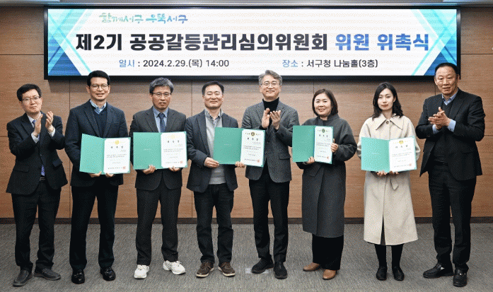 제2기 위원회는 서구청 당연직 위원 국장 4명, 서구의회 의원 1명, 민간 전문가 6명 등 총 11명으로 구성되어 2024년 서구 공공갈등관리 종합계획을 심의하고 공공갈등 대응과 발전 방향에 대해 논의, 갈등 예방 방법을 자문하는 역할을 수행한다.