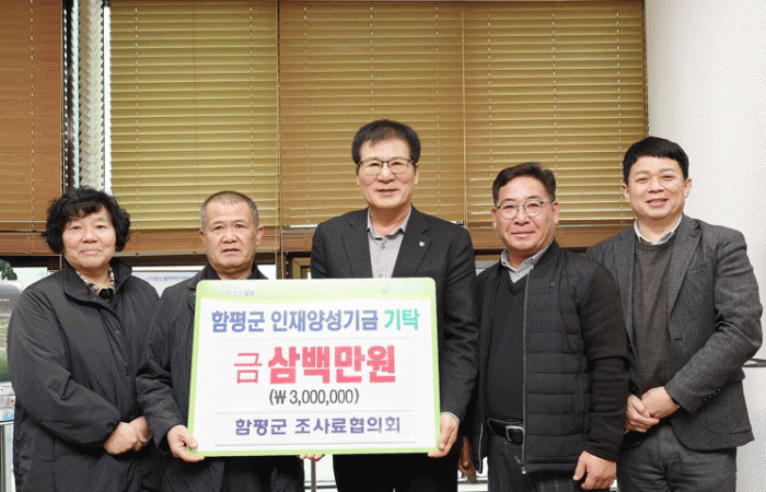 함평군 관계자는 “지난 29일 함평군 조사료협의회에서 3백만 원, 동함평산단에 소재한 발효사료 제조업체인 (유)농업회사법인 그린피드에서 5백만 원을 함평군 인재양성기금에 기탁했다”고 밝혔다.