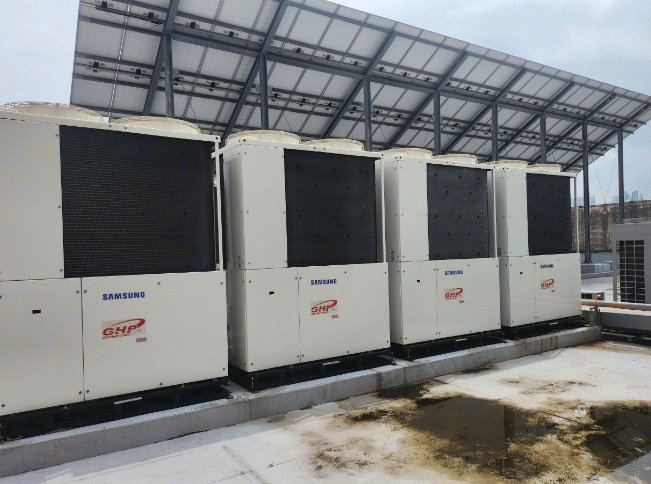 가스열펌프(Gas Heat Pump)는 전기모터 대신 도시가스사용 엔진을 이용해 실외기를 구동하는 냉·난방 시설이다.